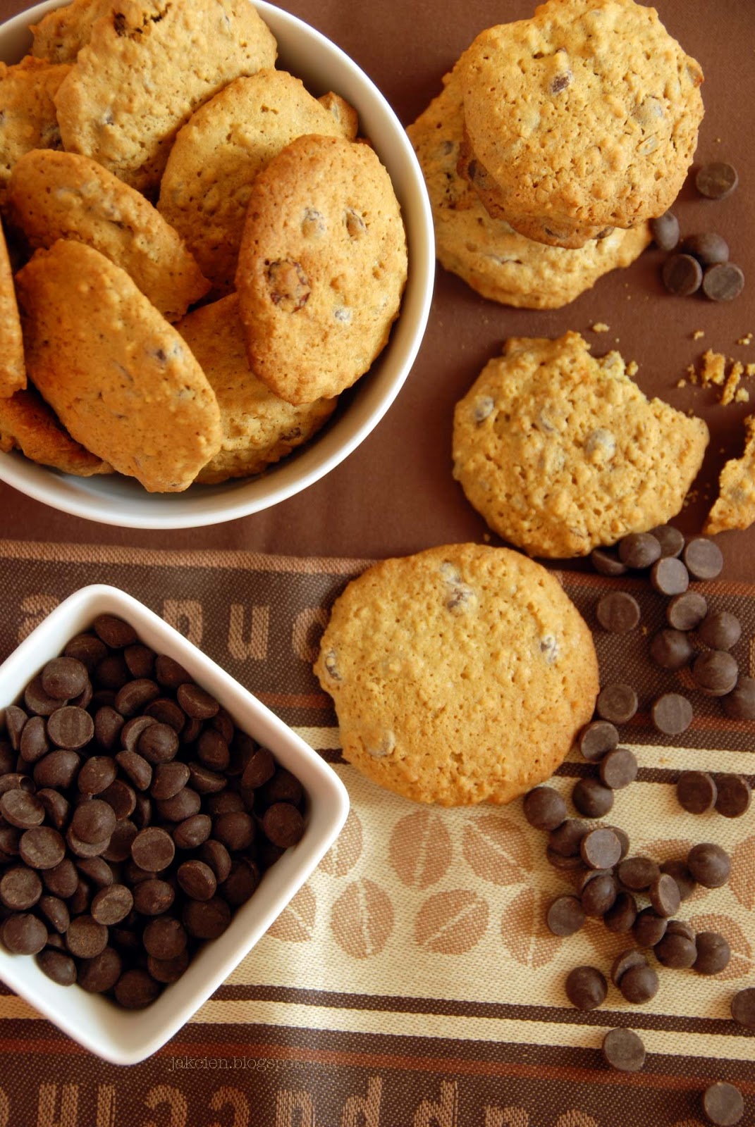 Mąkę owsianą można zastąpić inną mąką np. orkiszową albo użyć jedynie mąki pszennej. Polecam jednak skorzystanie z podanych proporcji. Dodatek mąki owsianej sprawia, że ciastka zachowują wilgoć i zyskują wyjątkowy smak.