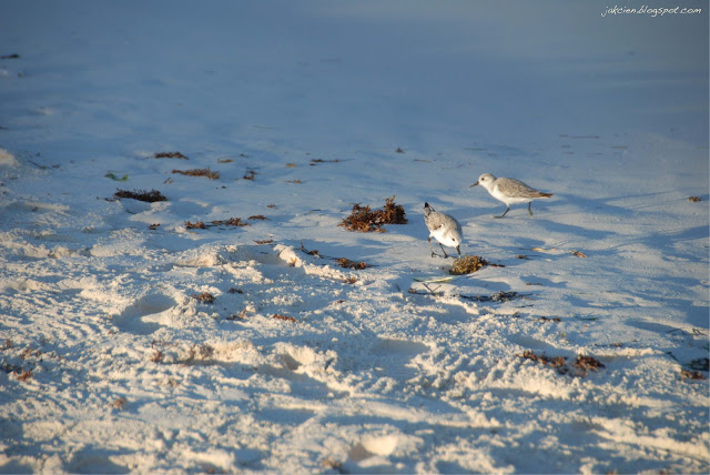 Siedziałam na plaży, ciepły, biały piasek przesypywał się pomiędzy palcami. Przez sandały i słońce na stopach pozostały białe paski. Morski wiatr miękko głaskał moją twarz i bujał żyrandolami z palmowych liści w plażowej restauracji. Słońce już zachodziło i na niebie powoli pojawiały się nowe kolory. Morze szumiało cichutko. Delikatne fale co chwilę uderzały o brzeg, goniąc stada drobnych sieweczek. Ptaszki wyglądały jak koraliki z zerwanego sznurka, które toczą się po plaży. Na cieniutkich nóżkach podskakiwały radośnie i wyjadały coś swoimi cieniutkimi dzióbkami, takie ptaszki-śmieszki. Ich odbicia pokazywały się w lustrze wody i znikały równie szybko jak fala liżąca brzeg.