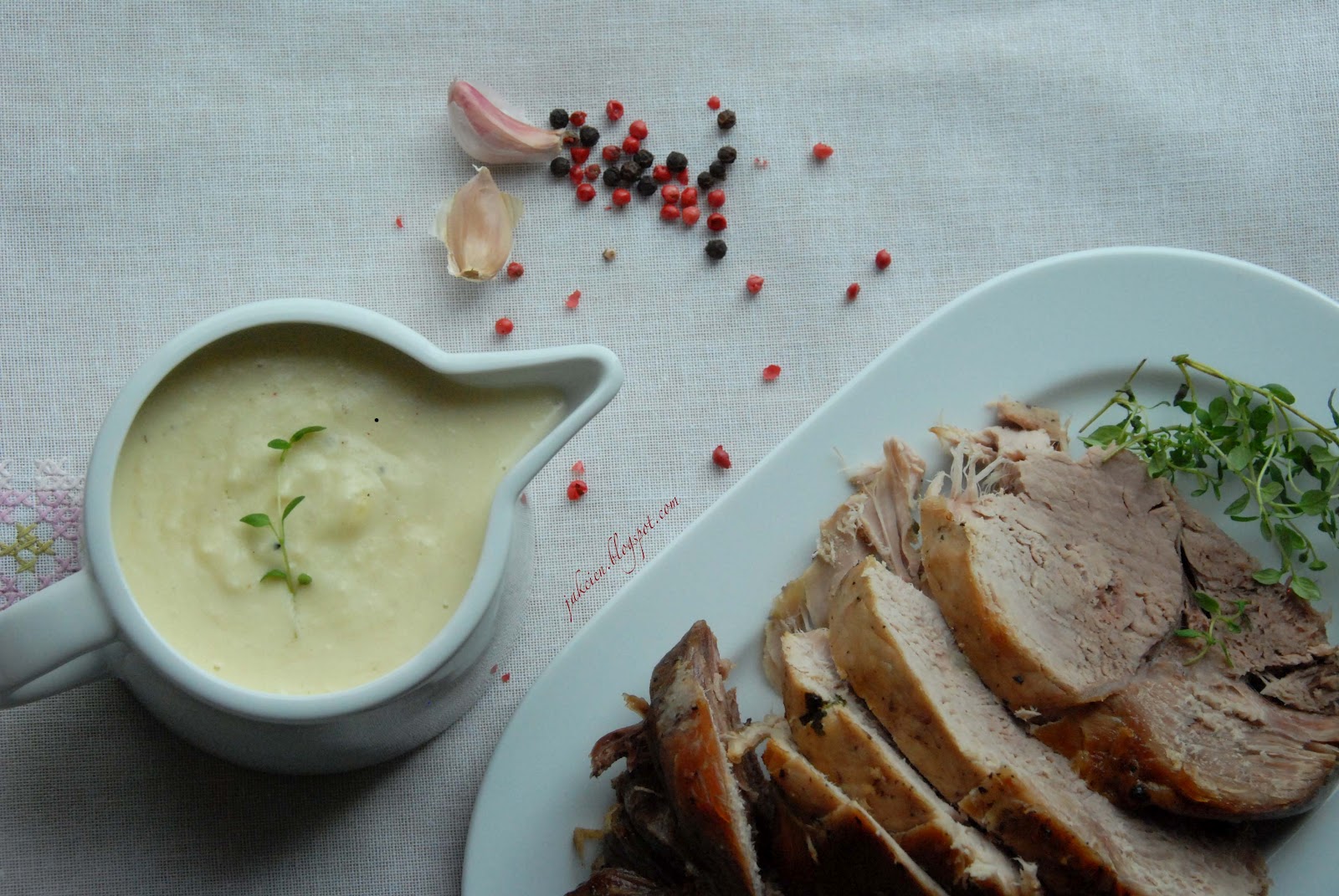 Na patelni trzeba rozpuścić masło i na nim podsmażyć mąkę jak na sos beszamelowy. Po chwili do mąki należy dolać bulion i wszystko wymieszać. Zamiast bulionu możecie użyć wody, z dwojga złego jest to moim zdaniem lepsze rozwiązanie niż kostka rosołowa, która zawiera niepotrzebne polepszacze smaku. W osobnym naczyniu należy rozmieszać śmietankę z żółtkami i wlać płyn na patelnię mieszając całość energicznie trzepaczką balonową. Gdy sos będzie miał jednolitą konsystencję można dodać utarty na drobnych oczkach tarki chrzan, pomieszany z sokiem z cytryny i odrobiną cukru. Sos zyska wtedy gęstą konsystencję i swój niepowtarzalny smak. Na sam koniec całość trzeba doprawić solą i pieprzem oraz sokiem z cytryny według uznania.
